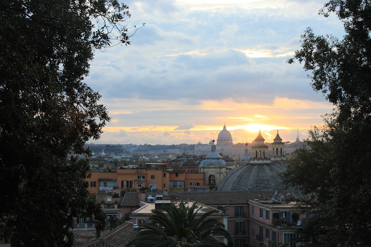 Segue-se pela Piazza Del Popolo e depois de subir mais umas escadas (sim, cansa, mas vale a pena) vai dar a um parque verde com uma vista muito bonita sobre Roma. O parque tem um lago com barcos a remos e aluguer de bicicletas. Fica junto da Vila Borghese (e tem o mesmo nome da vila) que é um sítio muito pitoresco, romântico, cheio de pequenas galerias de arte e venda de antiguidades na rua. Ao fim de semana, disseram-nos, tem ainda mais gente, com muitas famílias italianas a passear por estes lados.