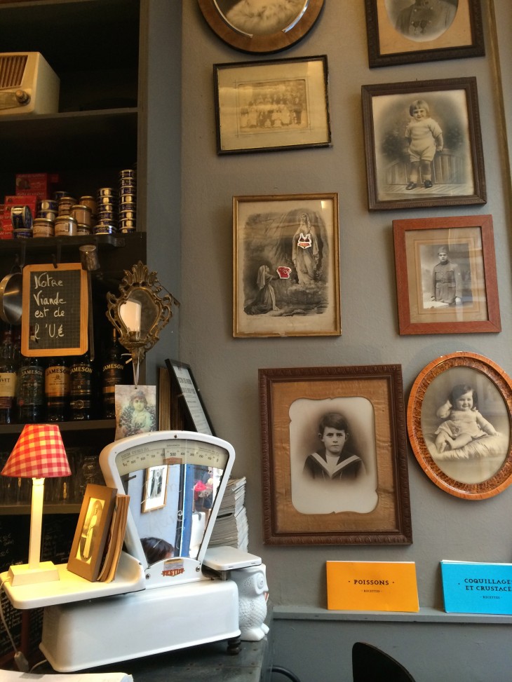 Um restaurate decorado com artigos vintage no interior, com fotografias e louças antigas – a casa de banho parece ter uma instalação artística com rolos de papel higiénico e balanças antigas penduradas até ao teto – e comida bem confeccionada. Provei um famoso croque Monsieur.