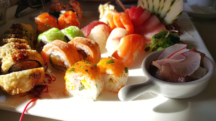 A carta tem por base a gastronomia mediterrânica e a japonesa – que não se esgota no sushi (mas claramente tem uma abrangência enorme na carta, com Temakis, Hossomaki, Uramaki, Gunkan, Nigiri, Sashimi, Hot Sushi, Tradicional, Freestyle, etc).