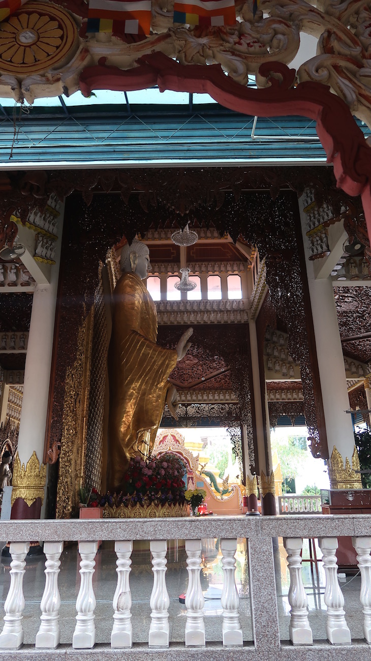 No interior, está umaa estátua de Buda enorme (de pé), rodeada por centenas de pequenas estátuas de outros Budas (dizem que são 1.000 estátuas pequenas). Atrás desta parede, estão inúmeras outras estátuas, ligadas a vários nomes de países, e onde diferem alguns traços faciais, consoante o país.