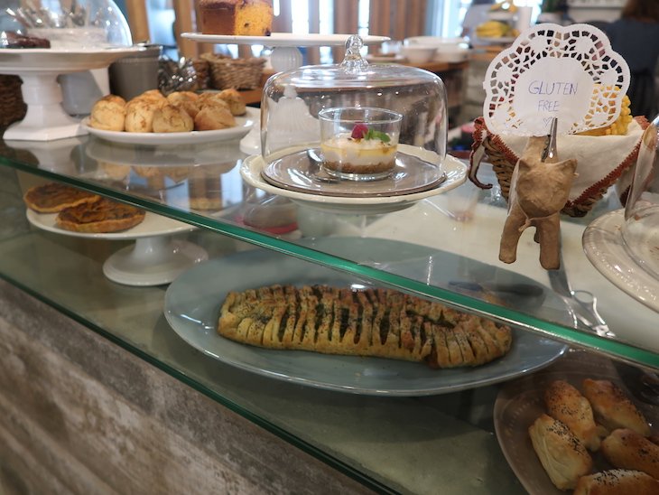 Os pratos do café e restaurante do Porto dos Gatos são vegetarianos e serve refeições diárias, desde os pequenos-almoços, almoços aos lanches, onde há doces maravilhosos. Quando lá entrei cheirava a bolo acabado de fazer. Ao sábado está sempre mais gente (há brunch), dizem-me, por isso quase todas as mesas da esplanada estavam já ocupadas e dois gatos cirandavam por entre os clientes à procura do melhor lugar. À sexta-feira fecham mais tarde e poderá lá jantar… uma das propostas é a francesinha vegana, por exemplo.
