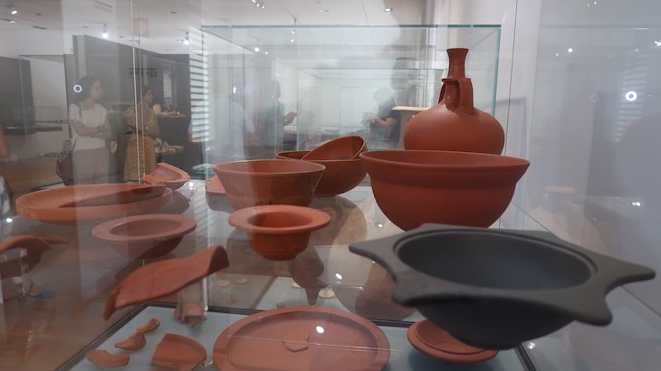 – Na sala 2, pode ver artefactos e ficar a saber mais sobre a História relativa à integração de Bracara Augusta no Império Romano: as louças, os jogos, as pedras de construções, moedas, profissões e comércio.