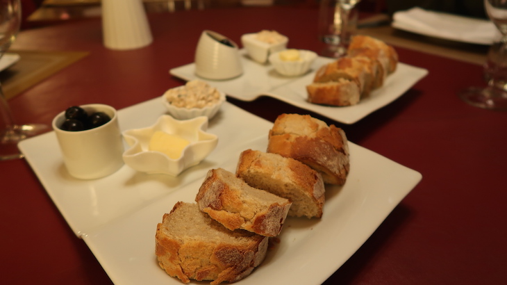 Para começar, na taberna, servem-se as azeitonas, que ainda vêm quentes e polvilhadas com especiarias. A acompanhá-las vem a tábua de queijos, presunto, frutos secos e bola e pão para acompanhar. Também para petiscar nas entradas, vêm os cogumelos salteados com chouriça, em molho “bem puxadinho”, o que significa que é picante q.b… para abrir o apetite. Para prato principal foi sugerido o bacalhau desfiado e uma rica salada (com legumes, tomate e pedaços de presunto, queijo e frutos secos), temperada e também regada com um fio de mel, que lhe dá um sabor totalmente diferente. Uma delícia fresca!