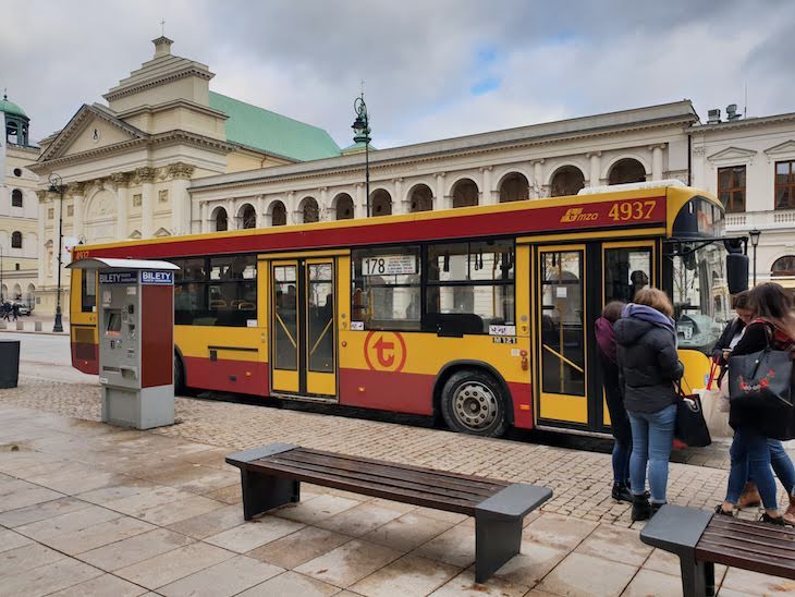 O bilhete de autocarro/elétrico custa 0.70 cêntimos e dá para todos os transportes incluindo metro – usei quando fui de autocarro para o Museu POLIN. Pode comprar o bilhete num quiosque, algumas paragens também têm máquinas ou, na falta destas, dentro do autocarro. Não se esqueça de validar o bilhete.