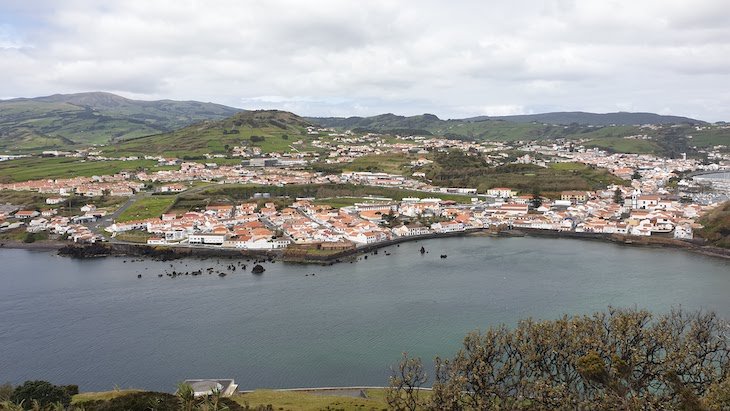 Passamos de uma ponta da Horta, para a outra. Subimos ao miradouro da Espalamaca, onde está uma imagem da Nossa Senhora da Conceição e uma cruz com 30 metros de altura. Com o céu limpo daqui, além do Pico que está mais próxima, avistam-se as ilhas de S. Jorge e Graciosa.