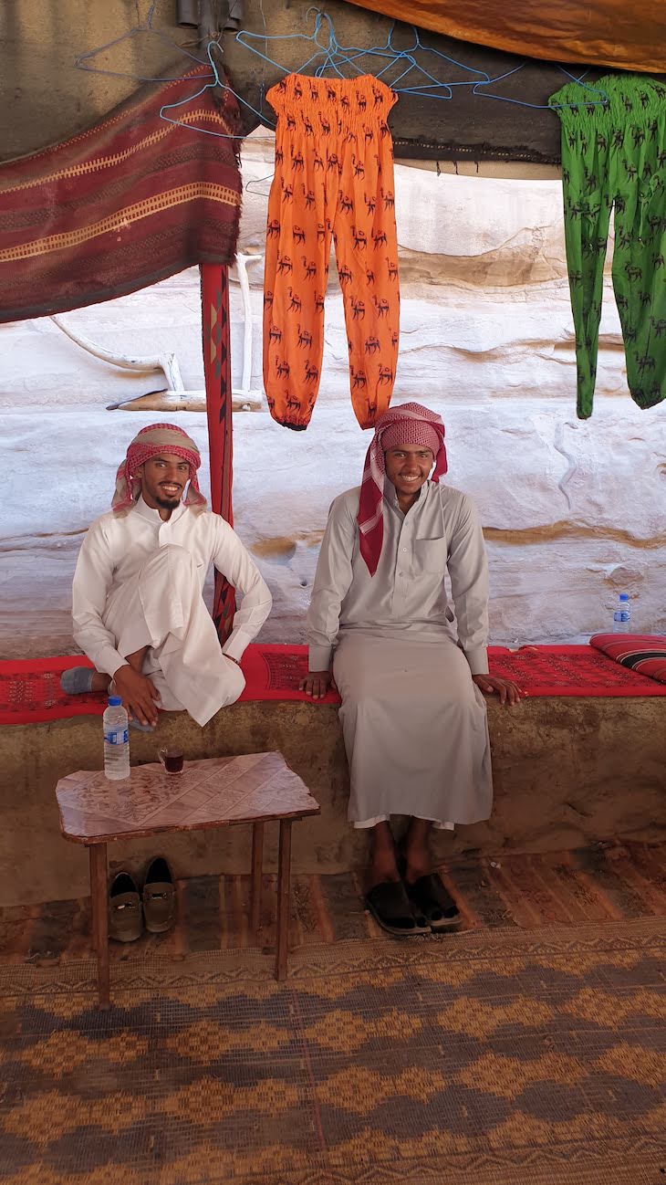 O passeio de jipe foi-nos mostrando alguns pontos panorâmicos de Wadi Rum e dá para perceber que tem apostado no turismo e que tem crescido bastante nesse campo. No meio do nada, veem-se os alvéolos brancos que podem ser acampamentos ou restaurantes ,que acolhem grupos de turistas. Parámos para beber um chá, numa tenda, ao lado de uma rocha onde estão gravadas caras ligadas ao filme “Lawrence das Arábias”.