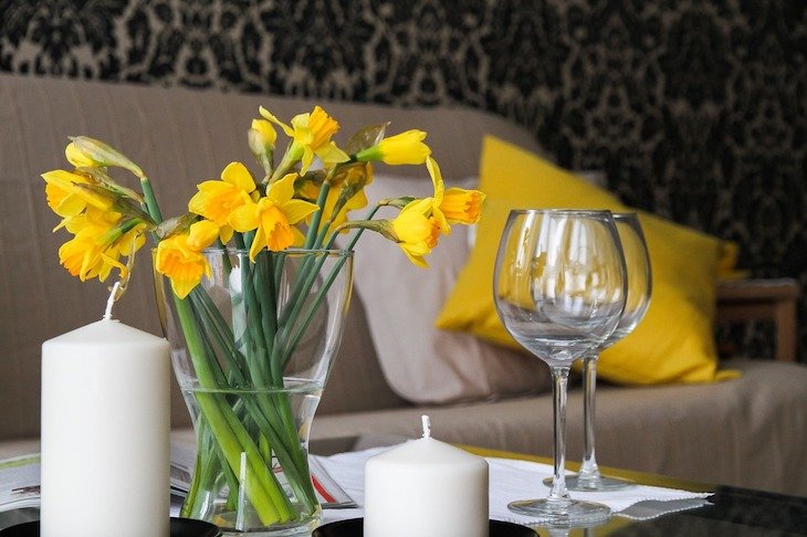 Estudos mostram que cheirinhos de limão, laranja e pêra podem baixar a ansiedade e os de lavanda acalmam a atividade cerebral. Pode comprar pachinhos com estes cheiros ou os difusores com óleos essenciais, ou velas, são também uma boa opção. No inverno, gosto de ter cheirinhos de maçã e canela e baunilha ou um de figo, que é tão especial que até o mantenho o ano inteiro. Não são muito intensos e dão um ambiente mais relaxante.