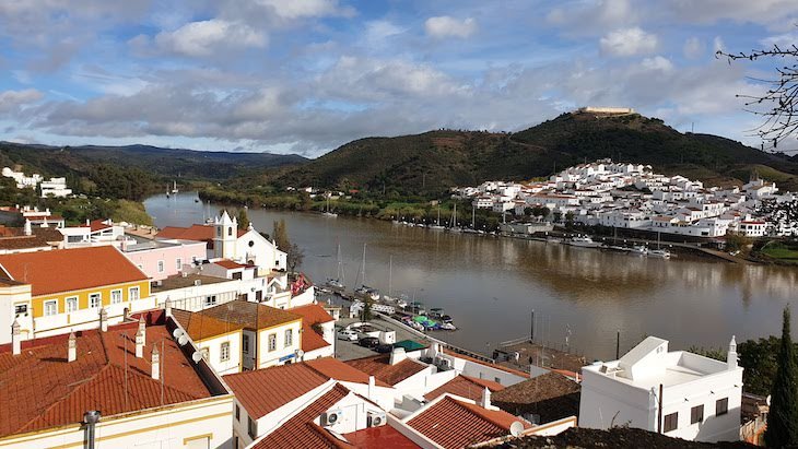 Ah! Se olharem para o lado espanhol vão ver uns cabos que passam por cima do Guadiana. Pergunto se é um miradouro. Dizem-me que é o maior slide entre dois países – só funciona no verão – e percorrerem-se 800 metros por cima do ria Guadiana.