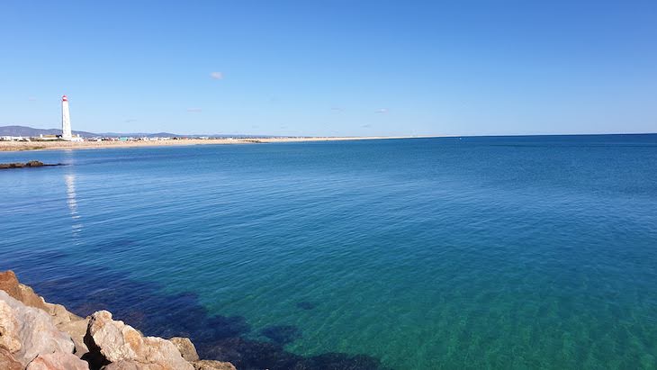 Na verdade, a Praia da Ilha do Farol está situada… na Ilha da Culatra, e pertence ao concelho de Faro. E o nome advém de aqui estar o farol do Cabo de Santa Maria, que foi edificado em 1851, e tem uma torre com 50 metros de altura. Fora da pandemia é possível visitar o farol e subir a escadaria (são mais de 200 degraus!) – costuma ser à quarta-feira que as portas de abrem para visitantes, mas verifique antes de lá ir. Com a pandemia, por questões de segurança e higiene, com quem lá trabalha, deixaram de abrir as portas a curiosos.