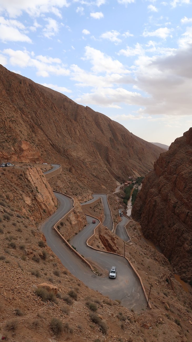 A estrada cheia de curvas é quase um cartão-postal desta parte de Marrocos, mas o que eu gosto mesmo de ver é o vale rodear-se de verde por onde passa a água do rio Dades. Tudo o resto parece conjugar-se numa paisagem que, depois de virmos do árido deserto, nos enche a vista.