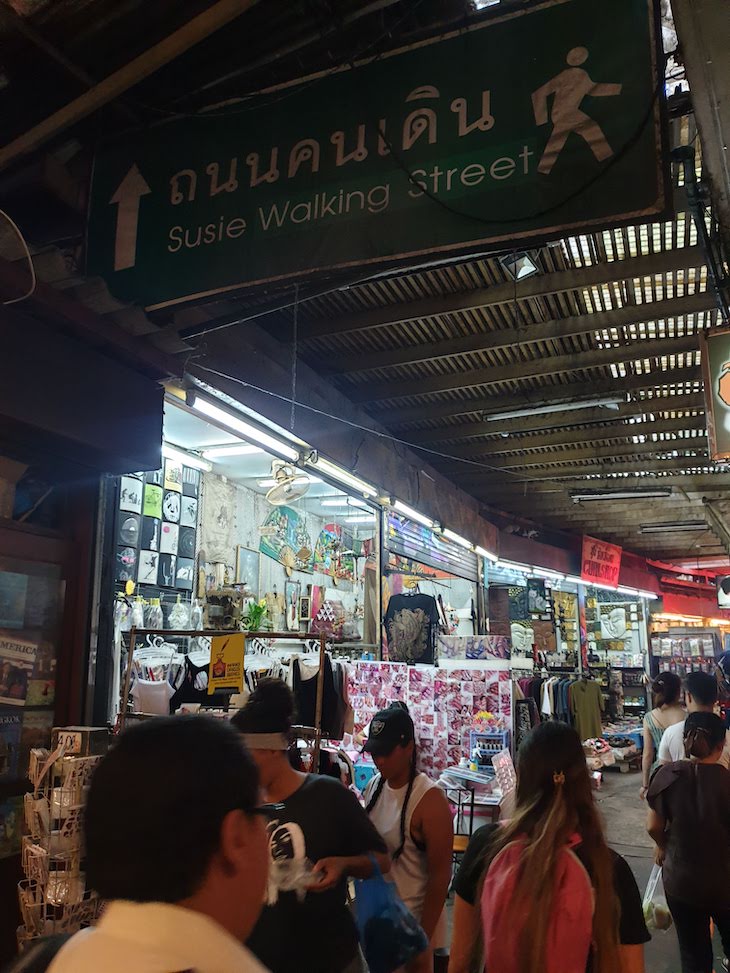 Na Khao San Road, uma das ruas mais conhecidas de Banguecoque, pode encontrar de tudo, desde comida realmente exótica (incluindo escorpiões, aranhas e gafanhotos), bares, hostels, cabeleireiros, lojas, e até várias casas de massagens. É aqui que turistas e tailandeses vêm para se divertir. Existe até uma placa com as “7 Coisas a Fazer em Khao San Road”: