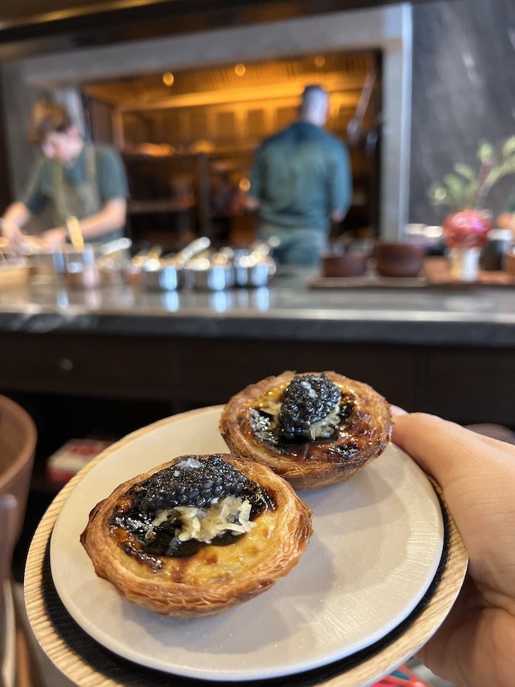 Na ementa, vai encontrar pratos mais ao estilo de snacks e outros mais compostos, mas todos com base em ingredientes portugueses, e comprados a produtores de norte a sul do país. Os menus podem ir variando, com o tempo, mas há pratos que já são clássicos como o Pastel de nata de nabos com caviar e a Lula gigante dos Açores, fumada com estufado de grão-de-bico e sames. Claro que… aconselhamos que provem ambos, mas não só!