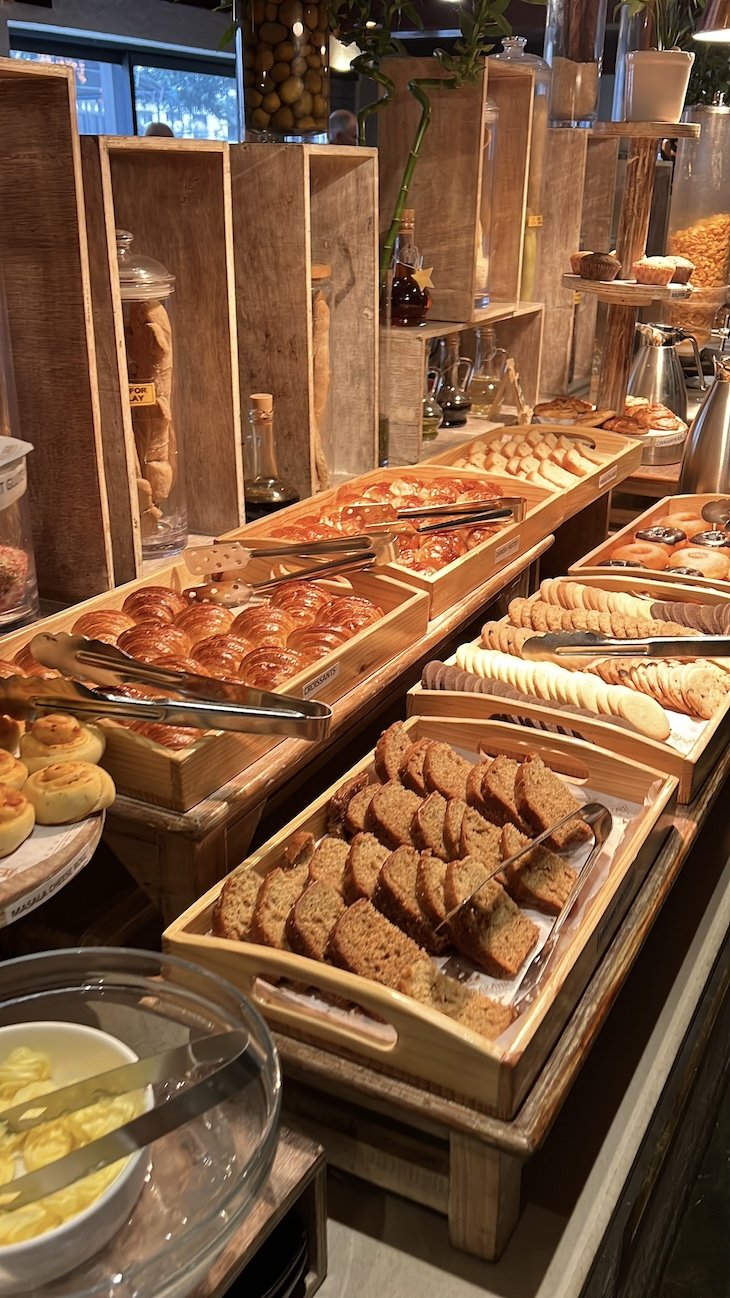 É um pequeno-almoço pensado para diferentes nacionalidades, equilibrando sabores internacionais com opções locais.
