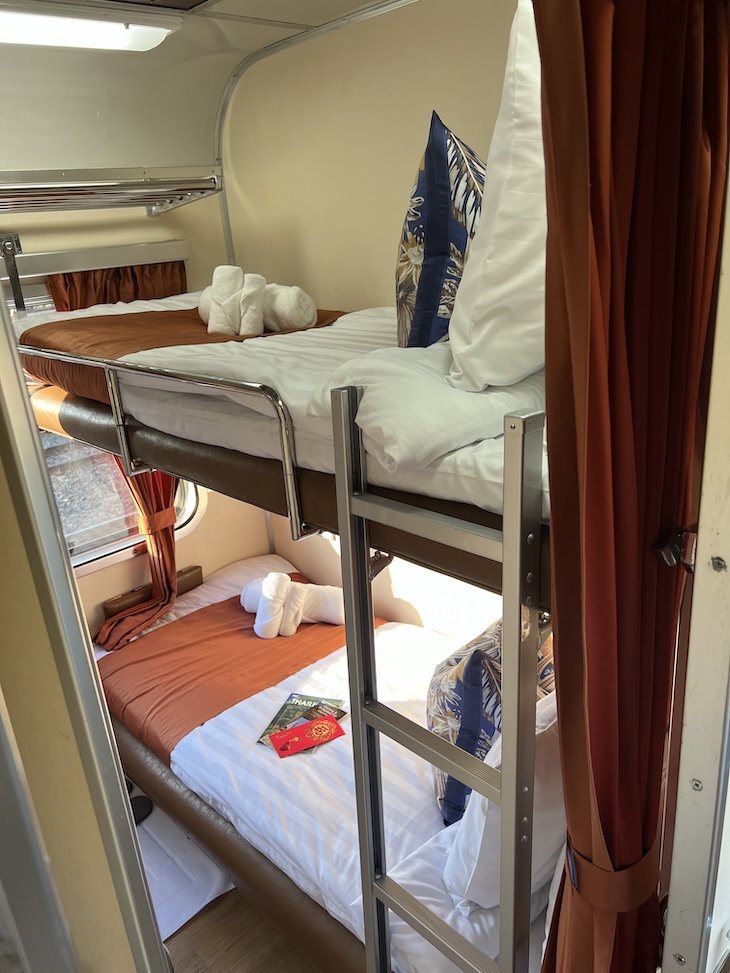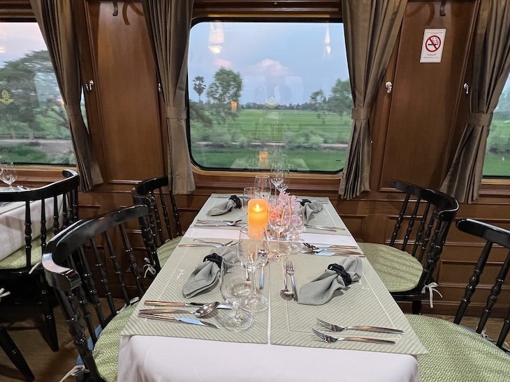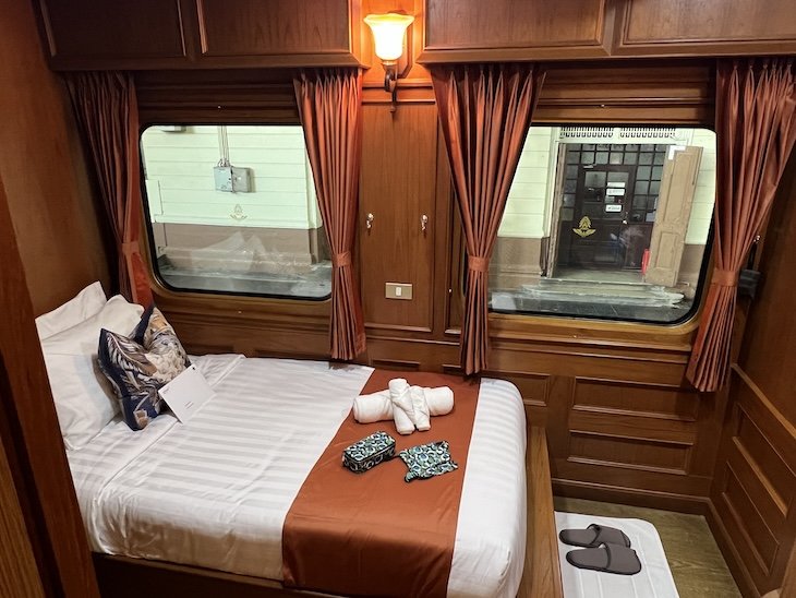 O que posso é partilhar o conceito: acesso raro, organização cuidada e uma Tailândia que não se encontra facilmente numa pesquisa online. E para gerir expectativas: o comboio serve para deslocações entre as cidades, algumas refeições são feitas a bordo do mesmo, mas apenas duas noites são aqui passadas a dormir – os quartos são diferentes, dependendo da categoria. As restantes noites são passadas em hotéis diferenciados e sempre com experiências gastronómicas e culturais incluídas.