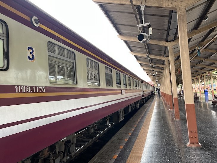 O segundo dia começa cedo e o comboio está à nossa espera na histórica estação de comboios Hua Lamphong Railway Station, inaugurada em 1916 e ainda hoje um dos símbolos do romantismo ferroviário de Banguecoque.