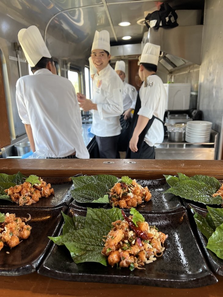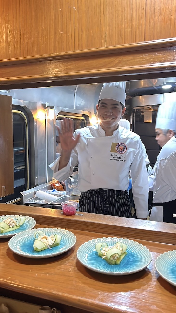 Depois deste dia cheio, regressamos ao comboio para uma viagem noturna rumo a Chiang Mai. À noite, tivemos um jantar requintado preparado pelo chef Patipat Lakthong, vencedor de vários prémios gastronómicos e que nos apresentou pratos criativos com base na culinária local e nacional.