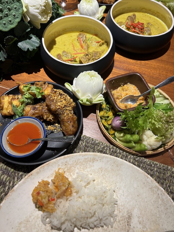 O almoço foi servido num restaurante de carácter singular, onde os sabores da herança tailandesa são apresentados com a autenticidade dos ingredientes.
