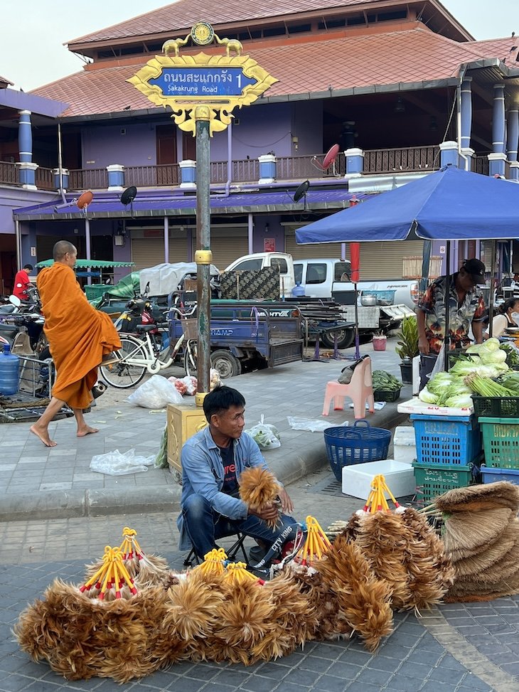 Logo de seguida encontra-se o mercado matinal, onde agricultores, artesãos e vendedores vendem os seus produtos. Os sabores, as cores, os cheiros e as conversas com os habitantes locais pintam um retrato vivo da vida quotidiana na Tailândia rural. Foi uma manhã bem passada entre os habitantes locais que estavam muito curiosos e queriam falar connosco.