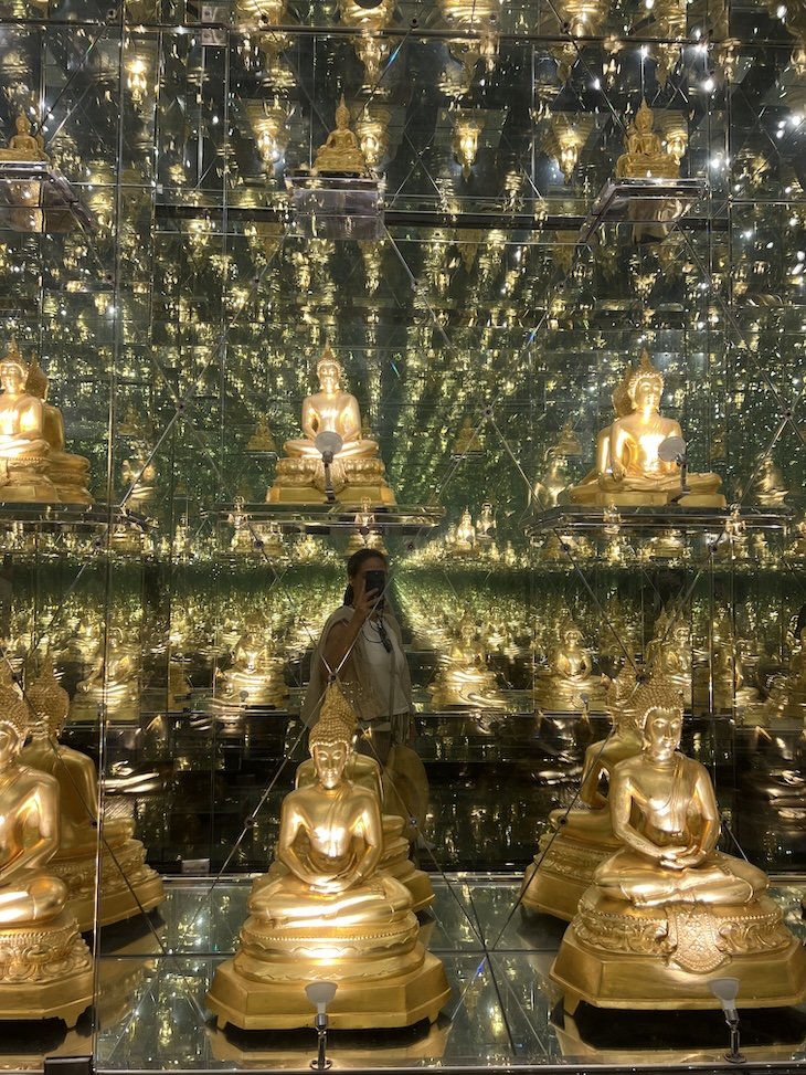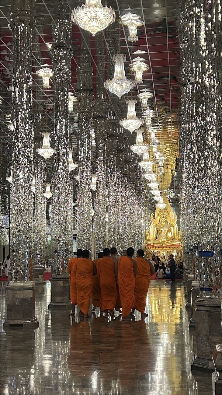 Outro ponto alto deste dia é a visita ao impressionante Wat Tha Sung, também conhecido como Templo de Cristal: um complexo extraordinário dividido em salões de espelhos que criam um ambiente quase transcendental, onde a luz dança entre pilares espelhados e reflexos.
