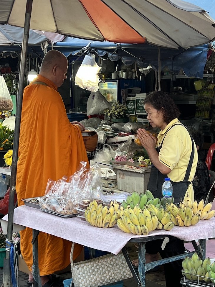 Antes do sol nascer verdadeiramente, acordamos cedo para um dos momentos mais genuínos da viagem: a doação de alimentos e bens aos monges, um gesto de generosidade praticado pelos habitantes, e que quisemos também participar de forma singela.