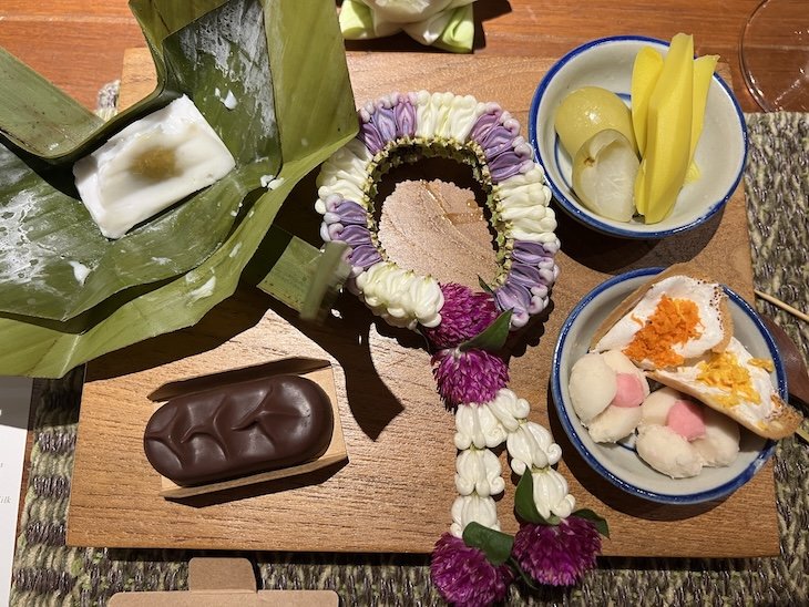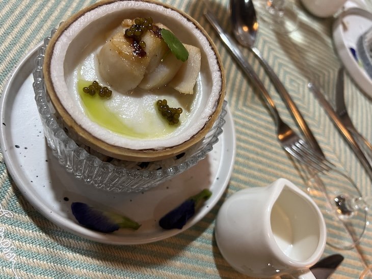 Ao final da tarde, o regressamos ao The Blue Jasmine para mais uma noite a bordo, e também para mais uma vez provar a riqueza gastronómica com um belíssimo jantar feito pelo Chef Patipat Lakthong, que teve como mentor o reconhecido Chef Alessandro Haab. A base dos ingredientes tailandeses foi transformada em pratos muito fotogénicos além de saborosos, até porque os olhos também comem.