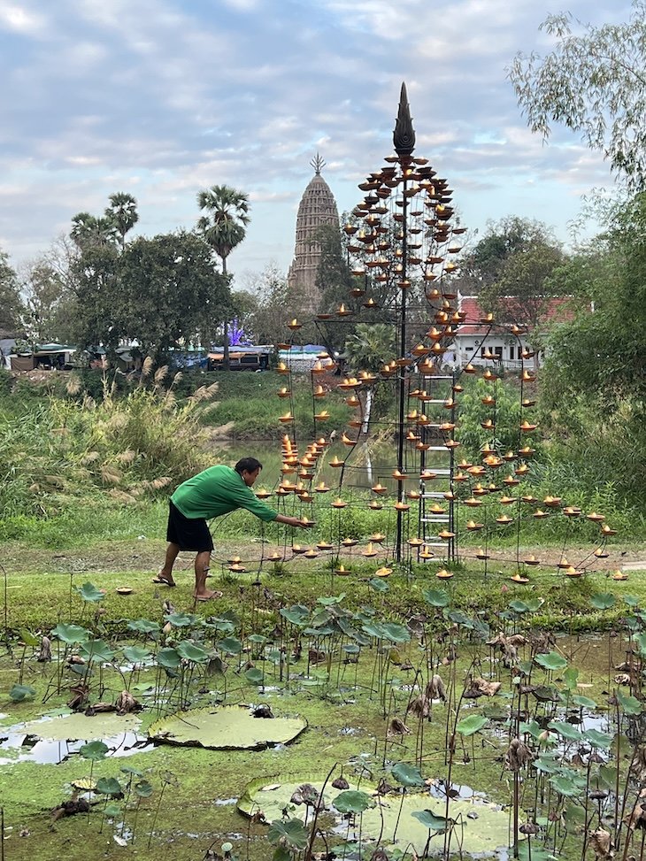 A primeira paragem é em Ayutthaya: capital histórica do Reino do Sião durante mais de quatro séculos, hoje classificada como Património Mundial da UNESCO devido ao seu parque arqueológico. Aqui, entre ruínas de templos, torres e Budas, sente-se a magnitude de um reino que foi, no seu tempo, um dos mais cosmopolitas da Ásia. O canal Khlong Sa Bua que circunda parte da cidade antiga é testemunha das antigas rotas aquáticas que ligavam o Sião ao resto do Mundo.