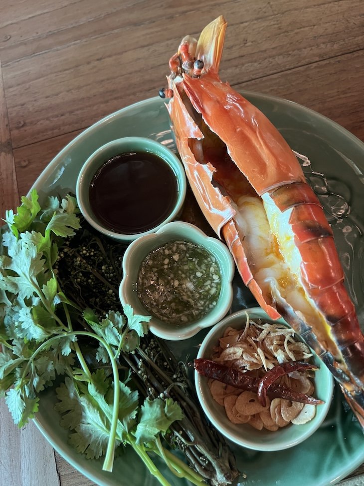 A cozinha tailandesa aqui é servida num estilo que privilegia ingredientes locais frescos e pratos que combinam sabores delicados com texturas marcantes. É uma verdadeira introdução à complexidade da gastronomia local, com provas do que é mais tradicional, inclusive provando os pratos locais como o lagostim do rio.
