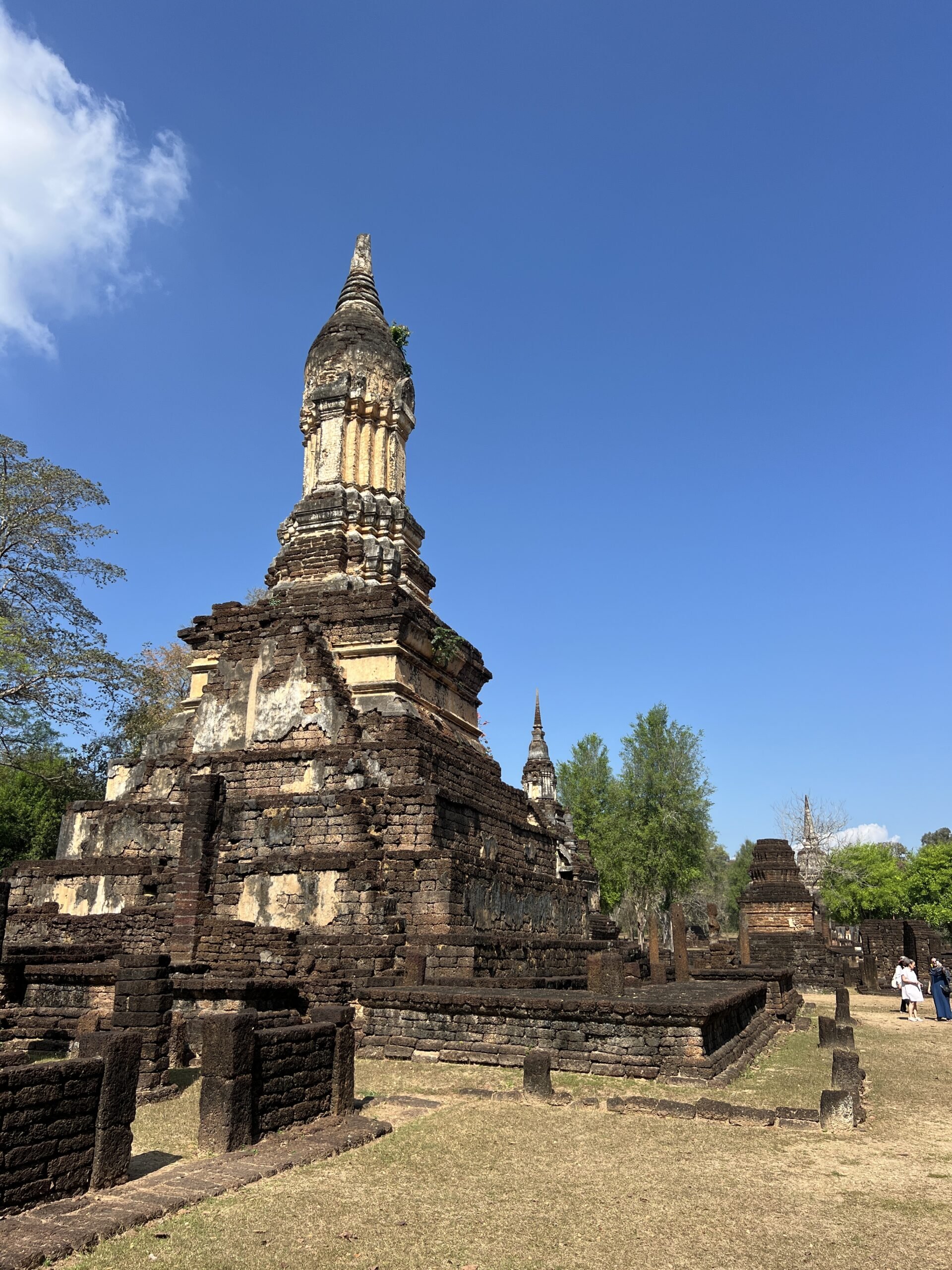 Entre os monumentos mais emblemáticos destaca-se o Wat Chang Lom, reconhecido pelos impressionantes contrafortes em forma de elefante que parecem sustentar o chedi principal. Já o Wat Chedi Jet Thaew chama a atenção pela elegância dos seus múltiplos chedis, que reflectem diferentes influências estilísticas do Sudeste Asiático, testemunhando a riqueza cultural e as trocas artísticas da época.
