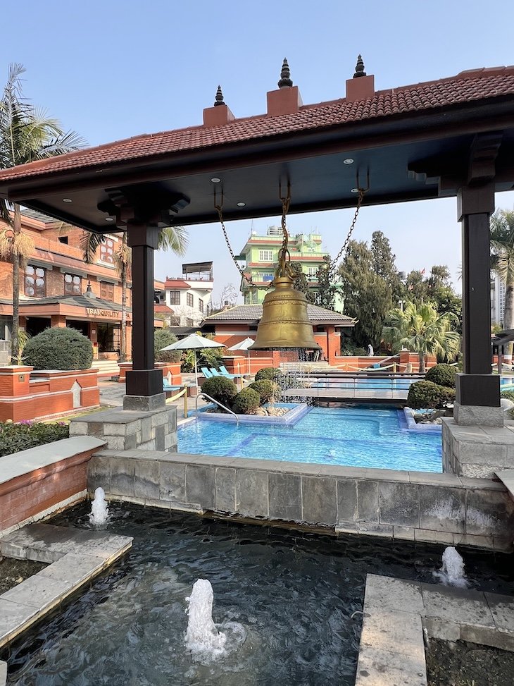 Um dos maiores diferenciais deste hotel é o espaço exterior. Implantado em extensos jardins paisagísticos (cerca de 12 hectares), o The Soaltee funciona quase como um resort dentro da cidade.