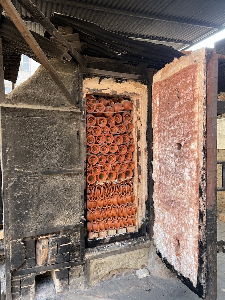 Ao chegar a Pottery Square, o cenário é imediatamente reconhecível: dezenas – por vezes centenas – de peças de barro alinhadas no chão, a secar ao sol. O espaço funciona simultaneamente como oficina, armazém e montra.