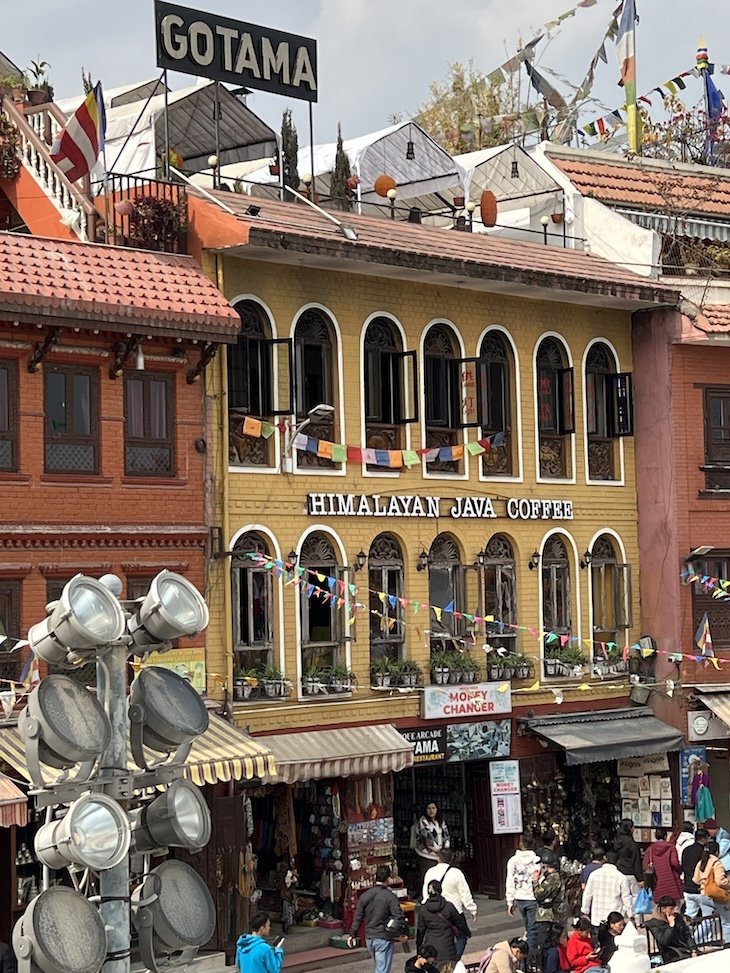 À volta da Boudhanath Stupa desenvolveu-se um bairro com cafés e restaurantes com vista para a estupa, lojas de artesanato tibetano e centros de meditação e estudo.
