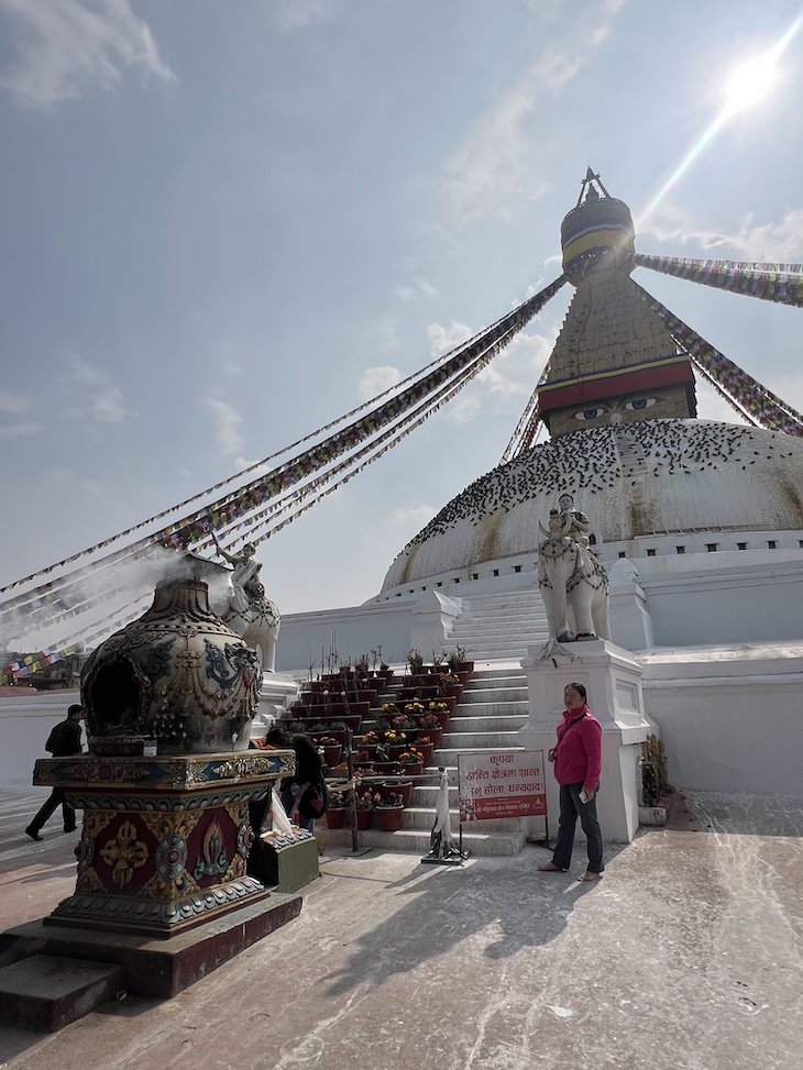 A Boudhanath Stupa não é apenas um local de visita mas caminhamos para uma experiência imersiva.