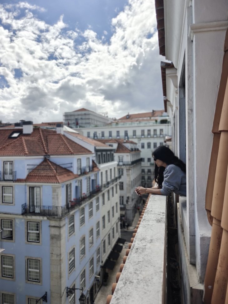 Há vários elementos que elevam a experiência, como dois cantinhos de leitura, junto às janelas, uma mesa que convida a uma refeição em grupo, ou um bom pequeno-almoço e uma vista sobre a Baixa lisboeta. Num hotel onde o estímulo visual é constante, este espaço funciona como um contraponto, ou seja, um lugar para abrandar, observar e absorver a cidade.