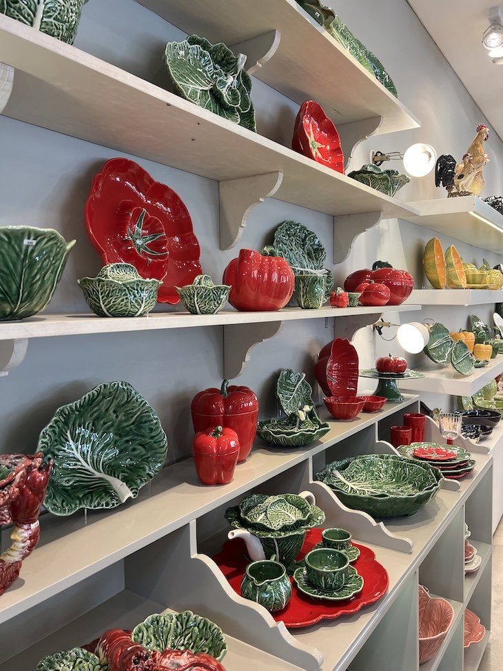 Ali ao lado está também a Loja Bordallo Pinheiro. Mais pequena, mas absolutamente irresistível. Aqui encontramos peças criativas e irreverentes – como pratos em forma de couve ou melancia, andorinhas, elementos naturais – que contrastam com a elegância mais clássica da Vista Alegre.