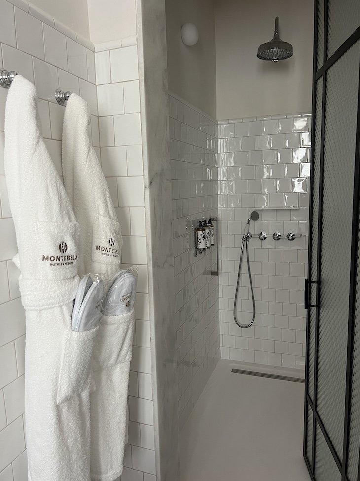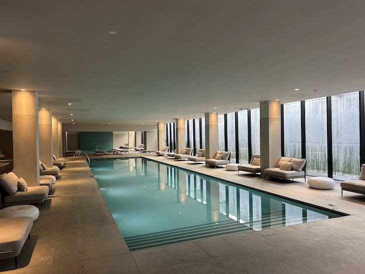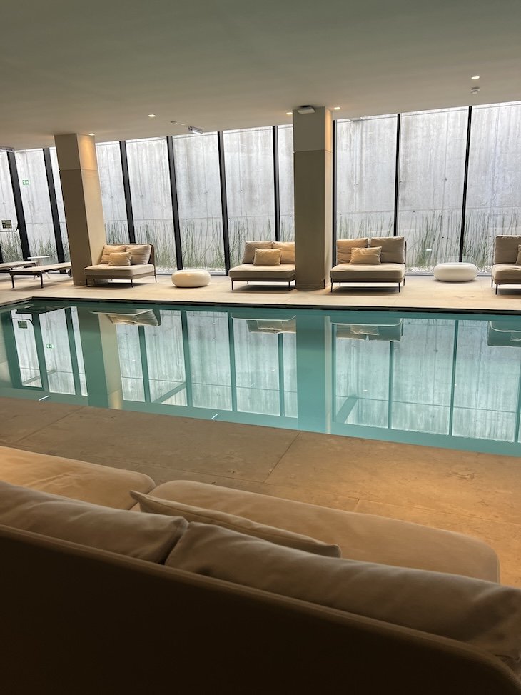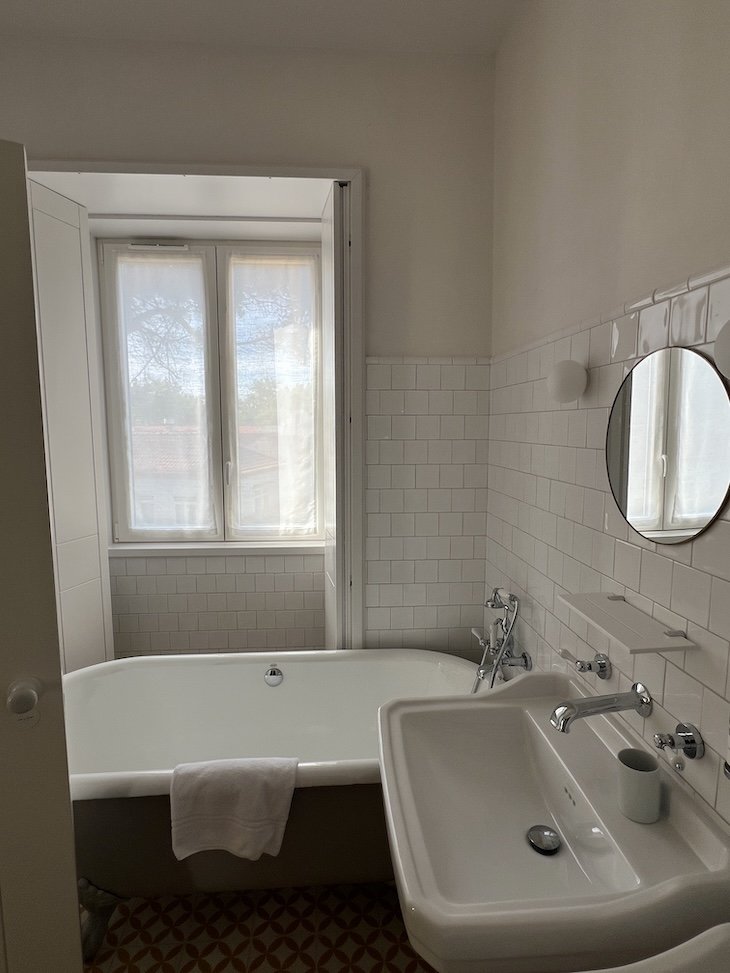 As casas de banho das suítes são um dos pontos altos: banheiras clássicas com pés, quase cénicas, ideais para longos momentos de relaxamento. Ler aquele livro especial, enquanto relaxamos na banheira? Check! Os produtos de higiene são da Castelbel, reforçando a aposta em marcas nacionais de qualidade. E diga-se que tem tudo: champô, amaciador, gel de banho e loção corporal. Além disso, tem os utensílios como num hotel – os roupões e chinelos do mais confortável que há – escovas e pasta de dentes; touca de cabelo; kit de beleza, etc. Tudo o que precisar. Mas deixem-me já avisar que para a piscina interior terá de levar a touca, para poder usufruir.