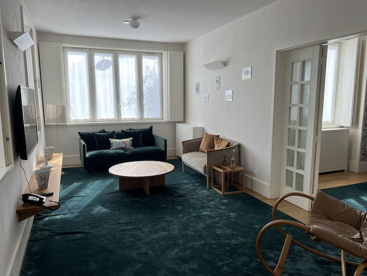 Ficar numa das moradias do Montebelo Vista Alegre é entrar numa dimensão mais íntima do projeto. Apesar de não estarem no edifício principal, estas casas permitem usufruir de todas as infraestruturas do hotel, mantendo uma sensação de refúgio difícil de replicar. Até a caminhada para o pequeno-almoço nos dá alento para fazer voltas aos verdejantes jardins!
